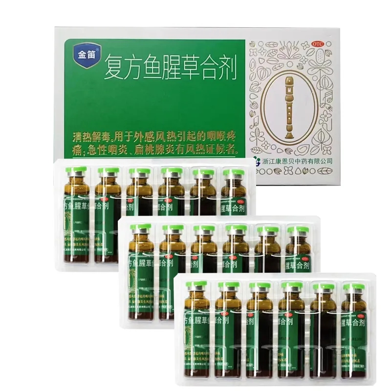 适用症/功能主治:复方鱼腥草合剂由鱼腥草、黄芩、板蓝根、连翘、金银花组成,具有解热、抗炎和镇痛的作用。