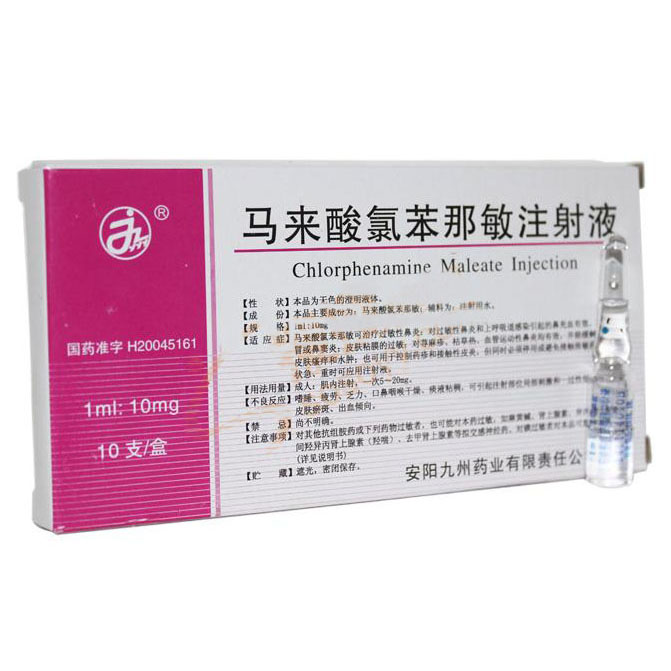 商品名称:*马来酸氯苯那敏注射液(扑尔敏)